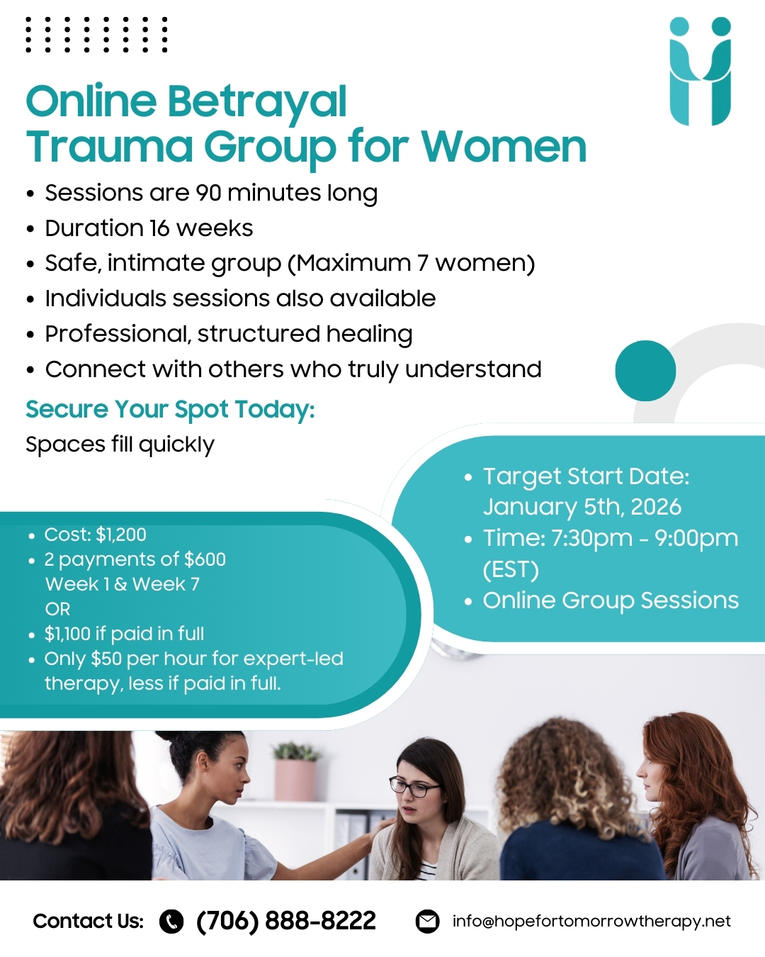 Our Betrayal Trauma Group offers a safe, structured, therapist-led space for healing, clarity, and emotional rebuilding.